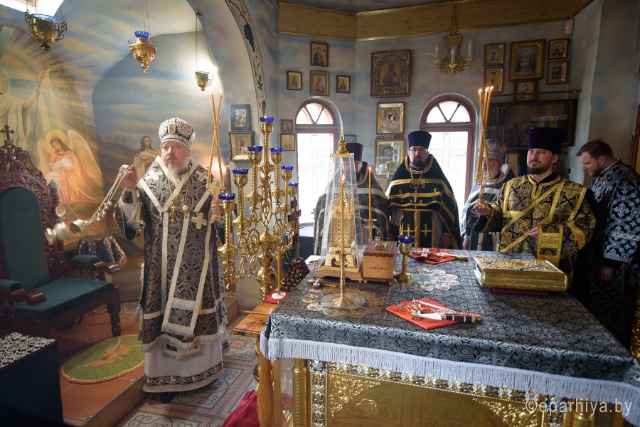 Божественную литургию Преждеосвященных Даров в Великий Понедельник, Высокопреосвященнейший Стефан, архиепископ Гомельский и Жлобинский совершил в храме Святой Живоначальной Троицы г.Гомеля.Высокопреосвященнешему сослужили: секретарь Гомельской епархии протоиерей Георгий Алампиев, благочинный Гомельского городского округа протоиерей Игорь Ольшанов, настоятель прихода протоиерей Владимир Масалитин и духовенство храма.