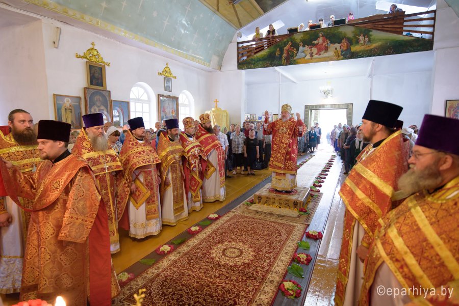 15 июня в Лоеве начались праздничные торжества. Накануне вечером, в храме Святой Живоначальной Троицы совершалось Всенощное бдение с литией.