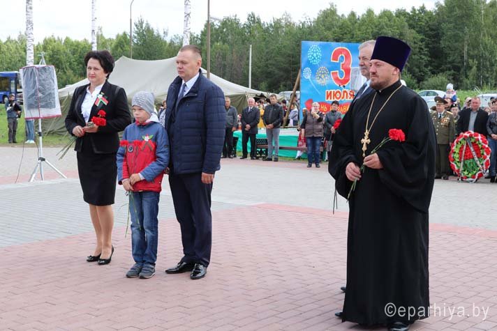 Благочинный Светлогорского округа, настоятель храма Преображения Господня в г. Светлогорске протоиерей Александр Кисель принял участие в праздновании главного государственного праздника - Дня независимости и 74-й годовщины освобождения Беларуси от немецко-фашистских захватчиков. Торжественные мероприятия начались в Светлогорске с утреннего шествия колонны горожан от магазина «Старт» по улице 50 лет Октября до монумента «Молчащий колокол» на Набережной площади. Сотни светлогорцев прошли в праздничных колоннах в составе трудовых коллективов предприятий, учреждений и организаций, возглавляемые руководителями районного исполнительного комитета, районного Совета депутатов.На Набережной состоялся торжественный митинг, посвященный Дню независимости. Его открыл председатель Светлогорского райисполкома Дмитрий Вадимович Алейников.