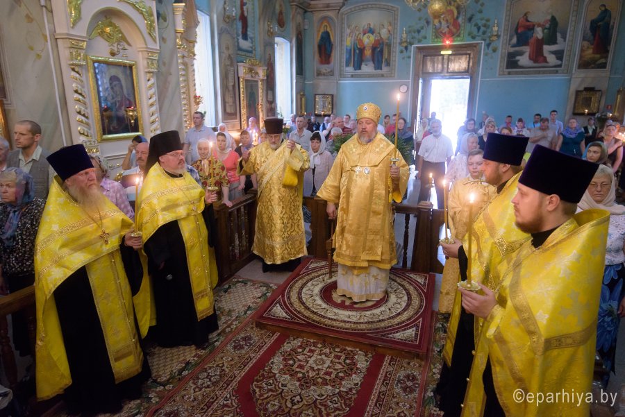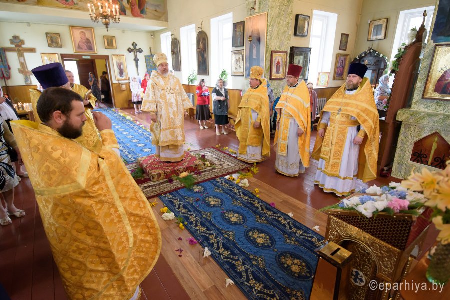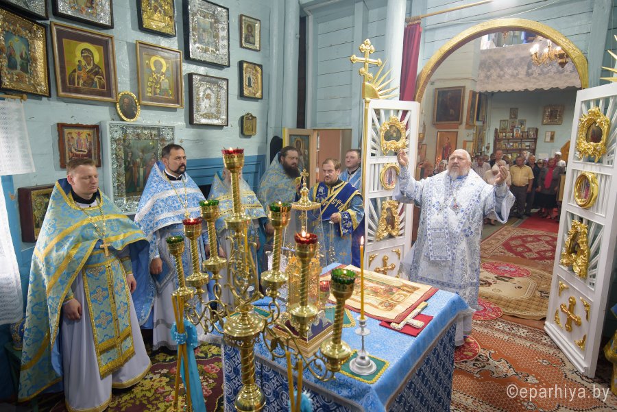 Божественную литургию в Неделю 8-ю по Пятидесятнице 22 июля 2018г. Высокопреосвященный Стефан совершил в храме иконы Божией Матери "Казанская" аг.Мичуринское.Высокопреосвященному сослужили: благочинный Гомельского районного округа протоиерей Артемий Кривицкий, настоятель храма иконы Божией Матери "Всех скорбящих Радость" г.Гомеля протоиерей Вадим Кочан и настоятель прихода протоиерей Вячеслав Барсуков.