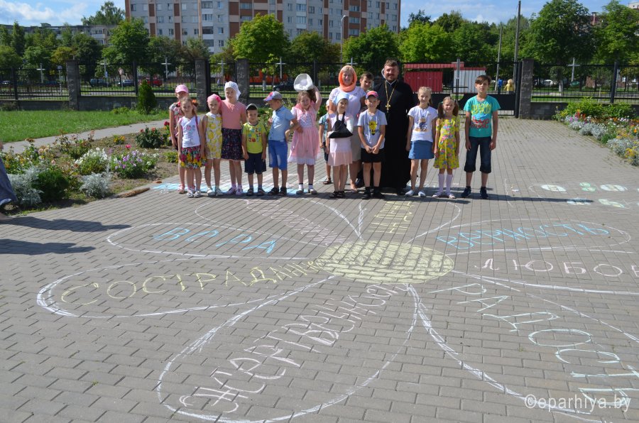 7 и 8 июля 2018 г., в Светлогорском благочинии состоялись праздничные мероприятия, посвященные Дню семьи, любви и верности – памяти святых Петра и Февронии – покровителей семьи и брака.7 июля на территории храма Преображения Господня в г. Светлогорске маленькие горожане вместе со своими родителями приняли участие в конкурсе рисунков на асфальте «Моя семья». Восторг и праздничное настроение царили возле храма, всюду были слышны детские голоса и смех, никто не остался равнодушным к творчеству юных художников.