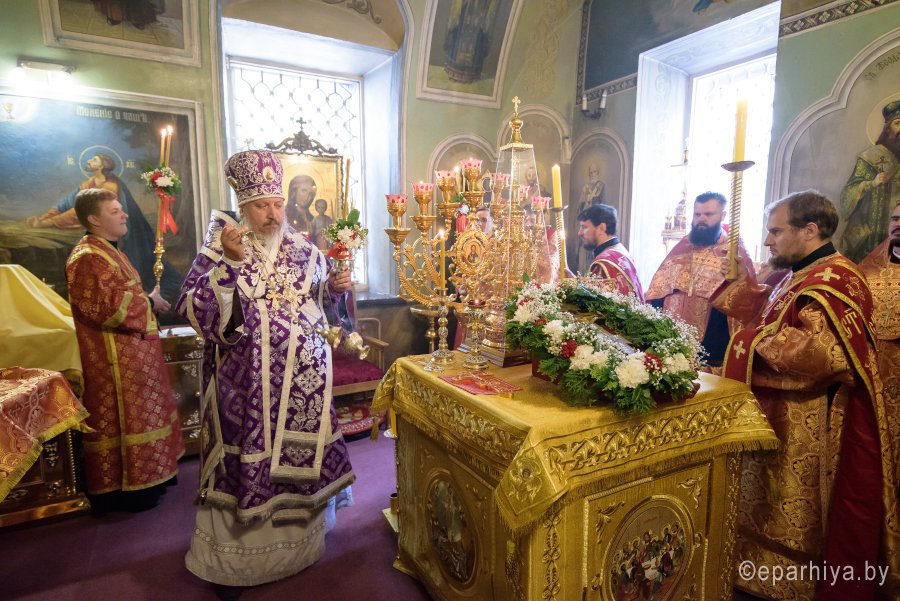 Вечером 13 августа 2018г., в канун праздника Происхождение (изнесение) честных древ Животворящего Креста Господня и день памяти семи мучеников Маккавеев, Высокопреосвященный Стефан совершил вечернее богослужение с чином выноса Креста в Свято-Петро-Павловском кафедральном соборе г.Гомеля в сослужении духовенства собора.По окончании богослужения Владыка обратился к духовенству и прихожанам собора со словами Архипастырского назидания.