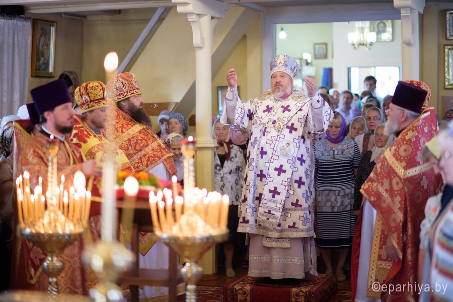 14 августа 2018г., в праздник Происхождение (изнесение) честных древ Животворящего Креста Господня и день памяти семи мучеников Маккавеев, Высокопреосвященный Стефан совершил Божественную литургию в храме святителя Василия Великого в г.Жлобине.Высокопреосвященному сослужили: секретарь Гомельской епархии протоиерей Георгий Алампиев, благочинный монастырей Гомельской епархии архимандрит Амвросий (Шевцов), благочинный Жлобинского округа протоиерей Василий Пилипенко и духовенство округа.
