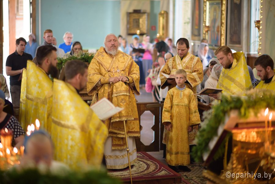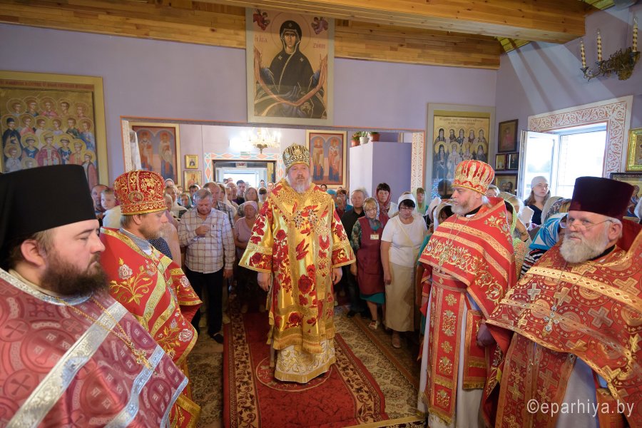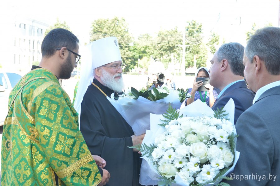 Патриаршему Экзарху сослужили: управляющий делами Минской Экзархии архимандрит Сергий (Брич); наместник Гомельского Никольского мужского монастыря, председатель Синодальной комиссии по канонизации святых Белорусской Православной Церкви архимандрит Амвросий (Шевцов); секретарь Минской епархии протоиерей Андрей Волков; клирики Гомельской епархии и приглашенные гости в священном сане.