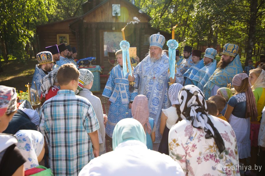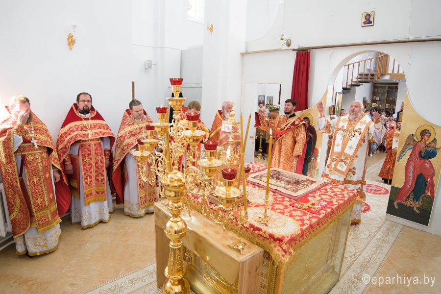 Божественную литургию в праздник Смоленской иконы Божией Матери, именуемой "Одигитрия" (Путеводительница), 10 августа 2018г. Высокопреосвященный Стефан совершил на подворье Свято-Никольского мужского монастыря аг.Терюха в одноименном храме.Высокопреосвященному сослужили: секретарь Гомельской епархии протоиерей Георгий Алампиев, благочинный монастырей Гомельской епархии архимандрит Амвросий (Шевцов), благочинный Гомельского районного округа протоиерей Артемий Кривицкий, благочинный Гомельского городского округа протоиерей Игорь Ольшанов, братия монастыря в священном сане и духовенство епархии.