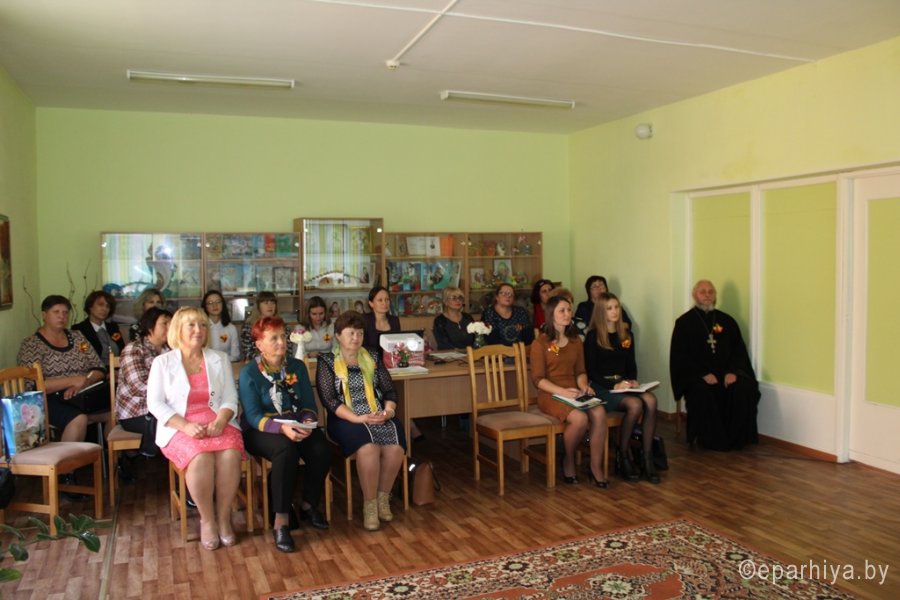 18 октября на базе ресурсного центра по духовно-нравственному воспитанию государственного учреждения образования «Ясли-сад №7 г. Рогачёва» состоялось первое занятие Школы профессионального мастерства для педагогических работников, организующих духовно-нравственное воспитание в учреждениях дошкольного образования. В его работе принял участие настоятель Прихода храма святого благоверного князя Александра Невского протоиерей Алексей Смотрицкий.Занятие было посвящено организации реализации программы «Духовно-нравственное воспитание дошкольников на православных традициях белорусского народа» в учреждениях дошкольного образования, её содержанию и формам. Руководила ходом занятия Пашковская Н.А., методист по дошкольному воспитанию Рогачёвского отдела образования, спорта и туризма. Маголло Т.М., заведующий учреждением образования, познакомила педагогов с правовыми основами взаимодействия учреждений образования с религиозными организациями. О специфике организации работы по программе «Духовно-нравственное воспитание дошкольников на православных традициях белорусского народа» в учреждениях дошкольного образования, методологических и методических принципах программы рассказала Бакадорова Н.В. - заместитель заведующего по основной деятельности. Воспитатель Минкова А.М. раскрыла в своём выступлении формы и методы воспитания на православных традициях белорусского народа.