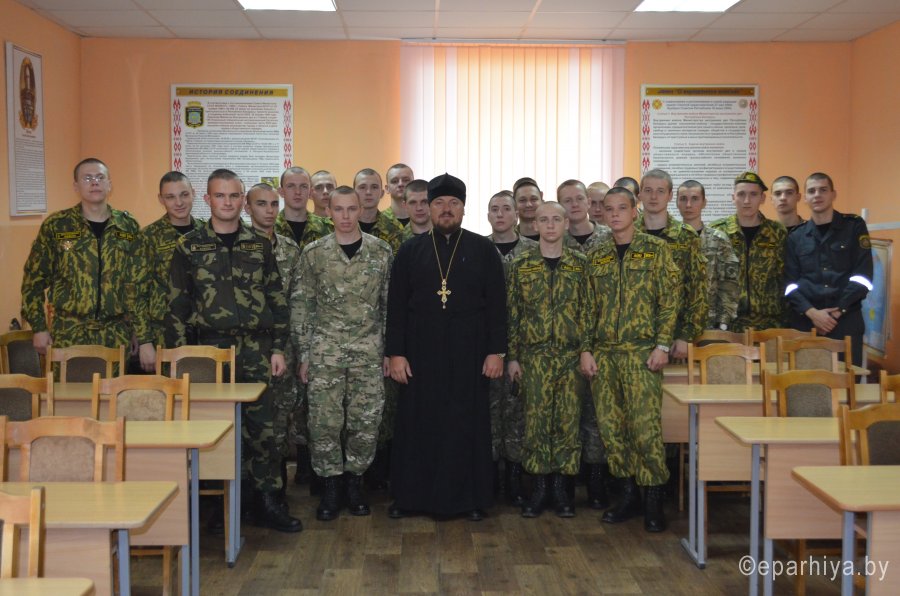 Традиционная встреча священника с военнослужащими 5-ой отдельной патрульной роты в/ч 5525 города Светлогорска состоялась 5 ноября.Благочинный Светлогорского округа протоиерей Александр Кисель обратился с напутственным словом к солдатам части, увольняющимся в запас. Священнослужитель отметил, что в настоящее время каждый солдат несет ответственность перед Родиной, командирами и товарищами. Выполнив свой воинский долг, мужчина продолжает нести ответственность за свою семью, за то, в каком духе будут рождены его дети и какое будущее им будет обеспечено главой семьи.