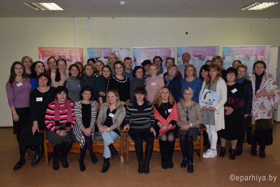 Усилиями трёх организаций: Гомельской епархии, Гомельского благотворительного общественного объединения «Центр поддержки семьи и материнства «Мамалето», УО «Гомельский областной институт развития образования» в Гомеле состоялся двухдневный семинар «Формирование позитивных установок на семейные ценности и здоровый образ жизни» с использованием выставочного комплекса для старшеклассников и молодёжи «Молодёжь – за жизнь, нравственность и семейные ценности». К участникам семинара со словами приветствия обратился председатель отдела религиозного образования и катехизации Гомельской епархии протоиерей Артемий Кривицкий, который пожелал всем плодотворной работы в этом столь нужном в нашем обществе направлении. «Мы уверены, что традиционная семья – неоспоримая базовая ценность, разрушение которой ведёт к гибели нравственности, культуры и личности. К счастью, в нашем мире по-прежнему встречаются люди, готовые тратить свои силы и время, чтобы потрудиться в деле формирования у подрастающего поколения традиционных семейных ценностей» - отметил о.Артемий.Далее с докладом «Глобальные угрозы семье и обществу» выступил доктор богословия, директор благотворительного фонда «Открытые сердца» (г.Могилёв), В.А.Волохович. Рассказывая о истории семьи как социального института, он отметил, что: «она тесно связана с демографическими процессами, приобретшими в современном мире всё более негативные черты. В Европе, Азии, Африке, на Ближнем Востоке мы видим одни и те же процессы: радикальное снижение рождаемости, увеличение числа сожительств, откладывание деторождения «на потом», увеличение числа людей, никогда не состоящих в браке и т.д. Беларусь, к сожалению, не является исключением». Далее опытом проведения духовно-нравственной беседы с использованием выставки для молодёжи «За жизнь, нравственность и семейные ценности» поделилась методист благотворительного фонда имени преподобной Ефросинии Полоцкой (г.Минск) Е.И.Ярошевич. Разделы выставки поднимают темы любви и влюблённости, целомудрия и верности, мужественности и женственности, святости материнства и отцовства, смысла жизни и др., заставляя задуматься над этими насущными вопросами.