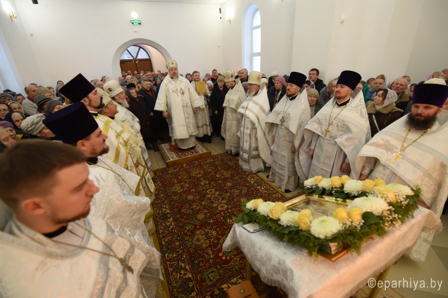 22 декабря 2018г. Высокопреосвященный Стефан совершил совершил чин освещения престола и храма в честь святителя Кирилла Туровского, а после совершил Божественную Литургию.Высокопреосвященному сослужили: секретарь Гомельской епархии протоиерей Георгий Алампиев, благочинный Речицкого округа протоиерей Алексей Пешко, благочинный Гомельского районного округа протоиерей Артемий Кривицкий, благочинный Светлогорского округа протоиерей Александр Кисель, настоятель прихода протоиерей Сергей Кисель и духовенство округа.