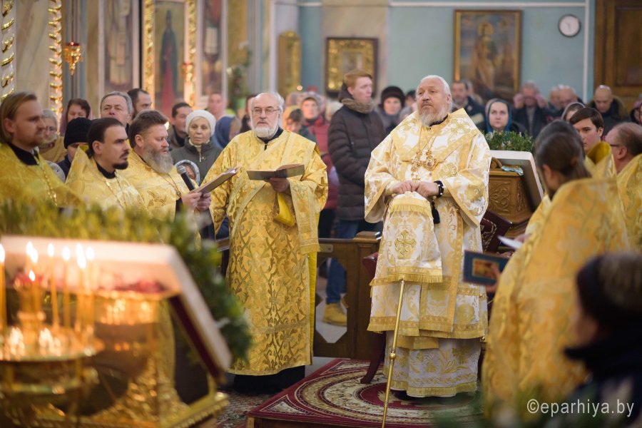 Вечернее богослужение с чтением акафиста нараспев Высокопреосвященнейший Стефан архиепископ Гомельский и Жлобинский совершил 23 декабря 2018г. в соборе святых апостолов Петра и Павла г. Гомеля в сослужении духовенства собора.Со словами проповеди к молящимся обратился настоятель храма святого праведного Иоанна Кормянского в г.Гомеле иерей Дмитрий Жданов.