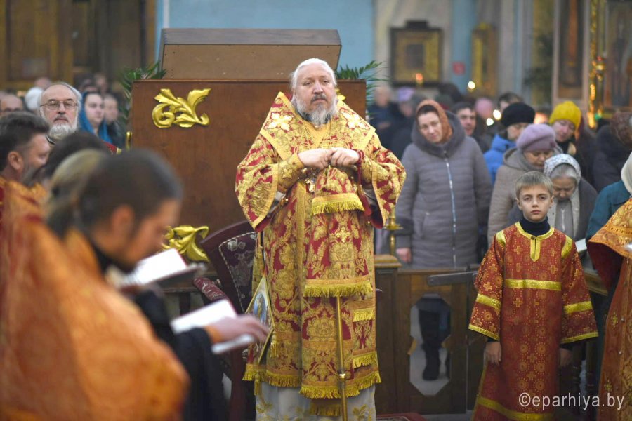 Вечернее богослужение с чтением акафиста нараспев, в канун дня памяти великомученицы Варвары, 16 декабря 2018г. Высокопреосвященнейший Стефан архиепископ Гомельский и Жлобинский совершил в соборе святых апостолов Петра и Павла г. Гомеля в сослужении духовенства собора.Со словами проповеди к молящимся обратился клирик храма иконы Божией Матери "Скоропослушница" в г.Гомеле иерей Александр Пранкевич.