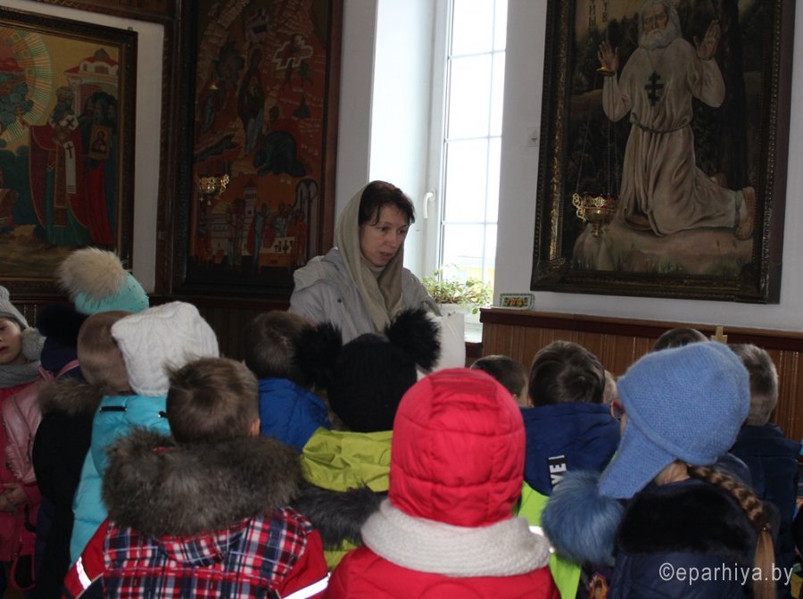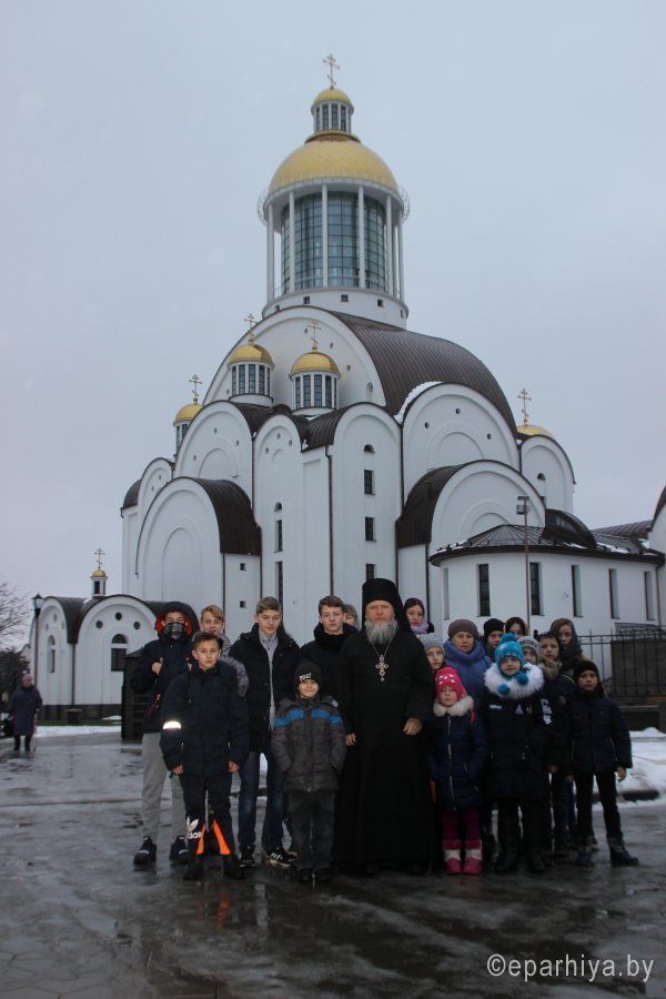 2 января дети из воскресных школ приходов храмов святой великомученицы Варвары аг. Боровики и святых Двенадцати Апостолов аг. Чирковичи в сопровождении настоятеля архимандрита Алексея (Желенка) посетили святыни города Солигорска.