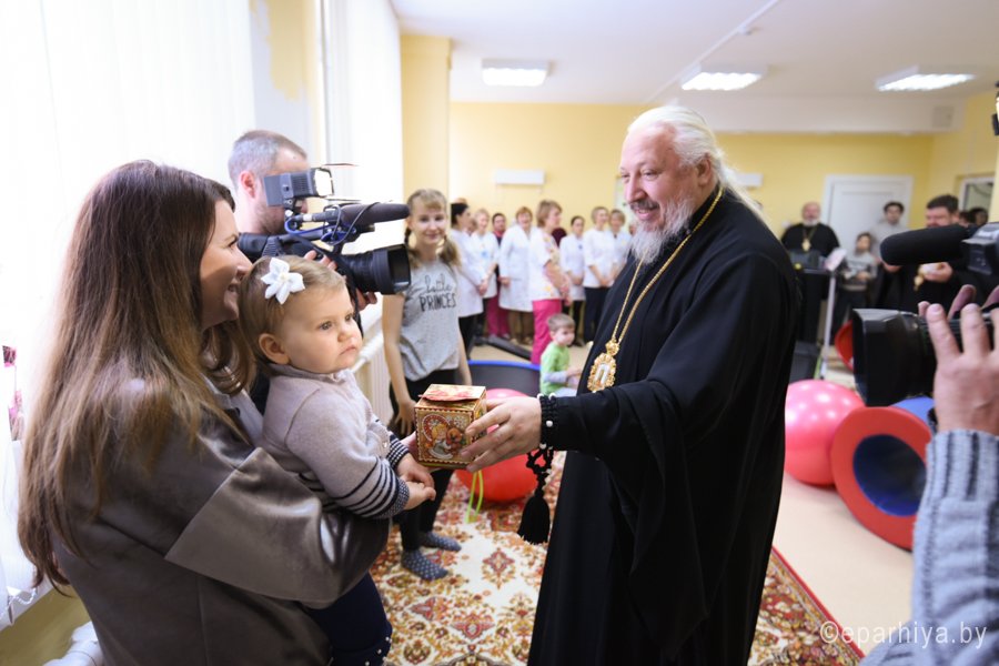 В Гомельской епархии не забывают о самых маленьких, именно тех, кому особенно необходима помощь и забота. В череде Рождественских мероприятий стало доброй традицией посещение Гомельской центральной городской детской клинической поликлиники.5 января 2019г. Высокопреосвященный Стефан, совместно с настоятелями Гомельских храмов Иверской иконы Божией Матери и Преображения Господня протоиереем Георгием Туром и протоиереем Олегом Костромой преподнес к празднику Рождества Христова оборудование для кабинета реабилитации и физиотерапии, благодаря чему маленькие гомельчане смогут заниматься восстановлением своего здоровья.
