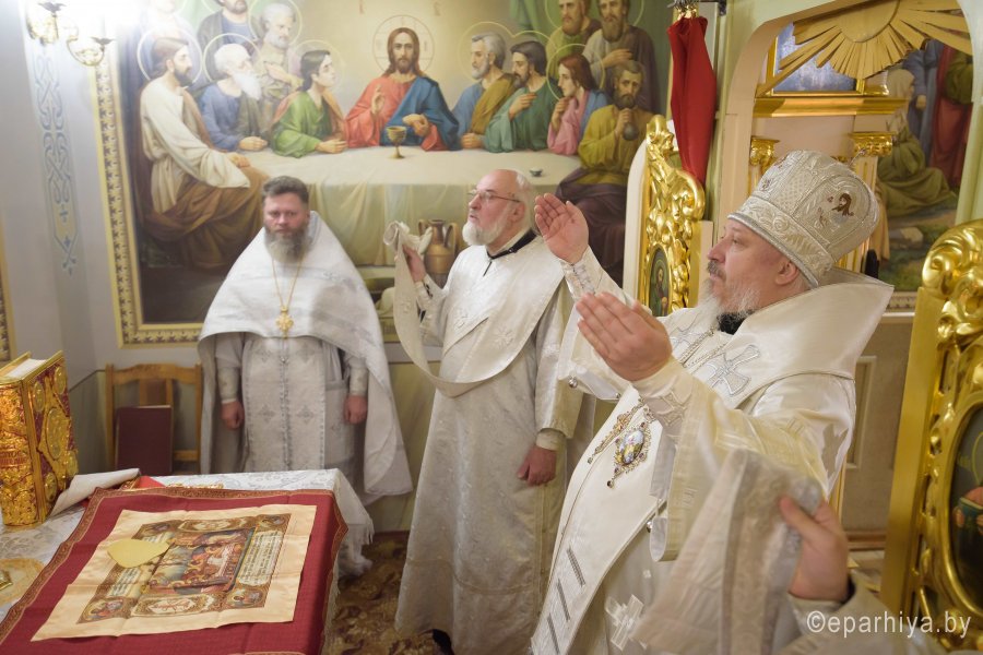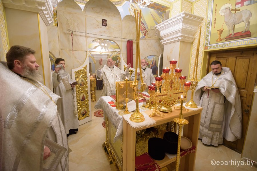 Божественную литургию в понедельник седмицы 35-й по Пятидесятнице Высокопреосвященный Стефан совершил в криптовом храме Петро-Павловского кафедрального собора г.Гомеля в сослужении духовенства собора.По окончании богослужения Владыка поздравил причастников с принятием Святых Христовых Таин и обратился к молящимся со словами Архипастырского назидания.