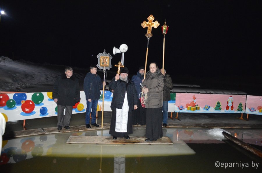 19 января в праздник Крещения Господня по окончании Божественной литургии настоятель прихода храма Преображения Господня в г. Светлогорске протоиерей Александр Кисель совершил чин великого освящения воды в водосвятнице храма и поздравил всех верующих с праздником Крещения. Затем благочинный Светлогорского округа возглавил крестный ход от храма Преображения Господня к спасательной станции ОСВОД на реке Березина, где также совершил чин великого освящения воды. Все желающие по народной традиции смогли окунуться в крещенской купели.