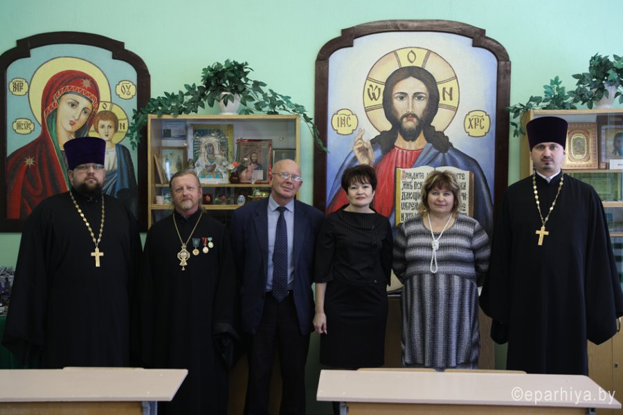 Поздравительные слова создателям класса по основам православной культуры высказали протоиерей Владимир Семенов, начальник отдела образования Жанна Черкас, председатель Паричского сельсовета Александр Цалко и другие участники торжества.