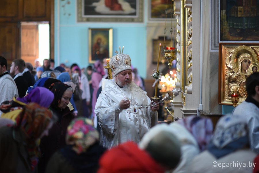 Всенощное бдение в канун праздника Благовещения Пресвятой Богородицы 6 апреля 2019г. Высокопреосвященнейший Стефан совершил в Петро-Павловском кафедральном соборе г.Гомеля.Высокопреосвященнейшему сослужили: секретарь Гомельской епархии протоиерей Георгий Алампиев и духовенство собора.