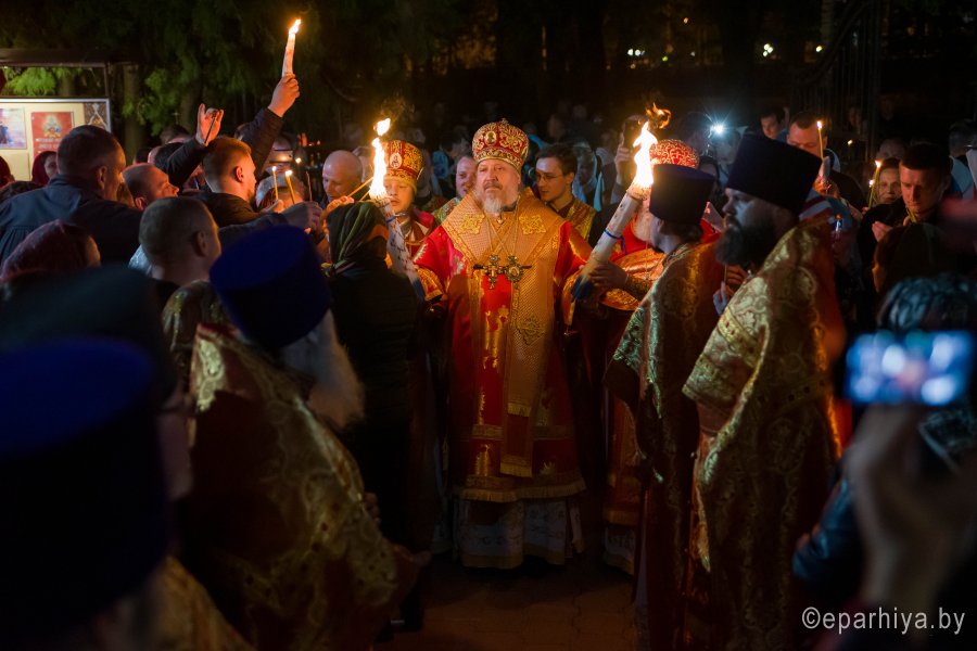 В пасхальную ночь с 27 на 28 апреля 2019 года, в кафедральном соборе первоверховных апостолов Петра и Павла г.Гомеля Высокопреосвященнейший Стефан архиепископ Гомельский и Жлобинский возглавил праздничные богослужения: полунощницу, крестный ход, заутреню и Божественную Литургию свт. Иоанна Златоуста.Высокопреосвященнейшему сослужили: секретарь Гомельской епархии протоиерей Георгий Алампиев и духовенство собора.