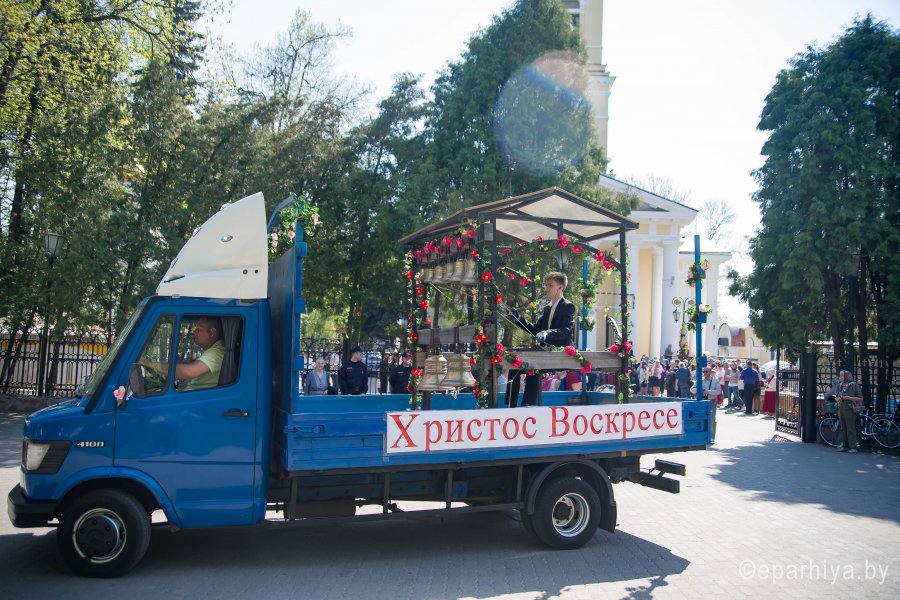 Благодатный Огонь доставили в храмы Гомеля в сопровождении звонницы