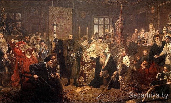 Во второй половине тринадцатого столетия Византийская империя очутилась под угрозой турецкого нашествия. Рим решил воспользоваться этим положением и предпринял попытку, начатую им ешё во время крестовых походов, — подчинить себе и византийскую церковь. Папа римский потребовал тогда, чтобы его власть была признана на всей территории Византии и, чтобы греки приняли его исповедание веры. На соборе, который состоялся в 1274 году в городе Лионе, во Франции, представители императора Михаила VIII-го, под давлением Рима, вынуждены были признать требования папы. Однако Лионскую унию решительно отвергли греческие епископы и греческие верующие. Также на соборе во Флоренции делегация императора Иоана VIII-го Полеалога 5-го июля 1439 г. подписала акт унии с Римским Костелом — за обещание оказания помощи для защиты Константинополя от турок. Византийской делегации был поставлен на этом соборе ультиматум, а не предложение оказания помощи христианам, оказавшимся в угрожаемом положении. Римские легаты не допустили даже до дискуссии о догматических расхождениях, разделяющих Восточную Церковь и Римский Костел. Православная сторона вынуждена была признать папскую власть и подтвердить принятие римского вероисповедания. Однако, несмотря на подписание флорентийского акта,