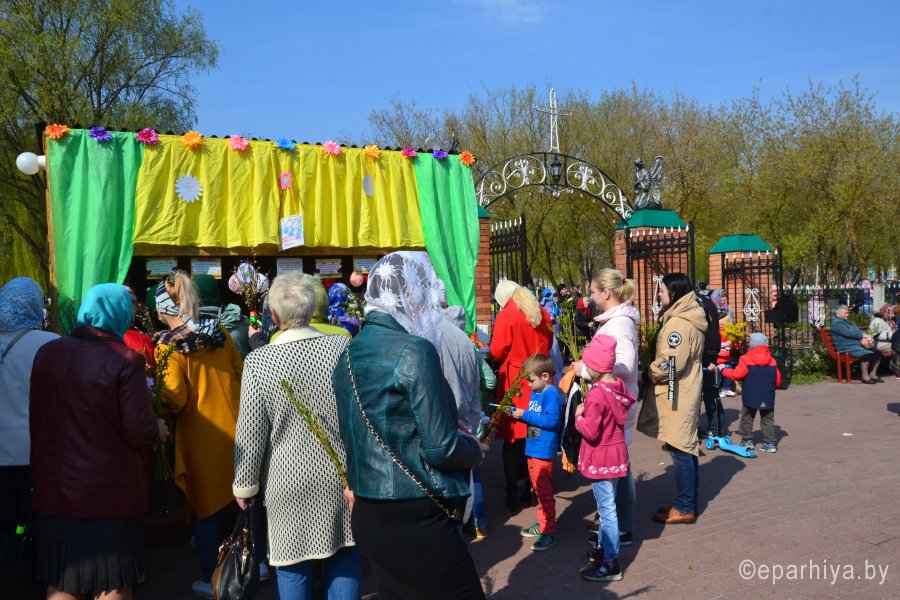 Православные люди отмечают один из самых важных церковных праздников - Вход Господень в Иерусалим, в народе его называют иначе — Вербное воскресенье. Именно в этот день в церковь носят вербу, чтобы освятить ее. Это растение символизирует пальмовые ветки, которыми приветствовали вход Иисуса в Иерусалим. Ту вербу, которую освятили, хранят дома в течение всего года и украшают ими иконы.В храме святого Архангела Михаила в г. Гомеле, 21 апреля 2019 г., после Божественной литургии прошла пасхальная ярмарка, подготовленная силами прихожан храма. Все собранные в ходе ярмарки средства пойдут на благотворительные цели.