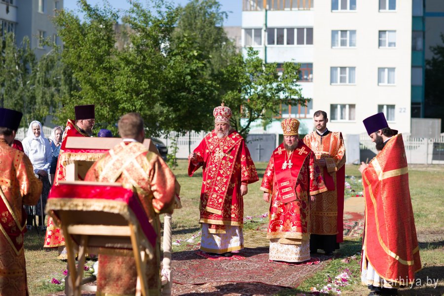 Божественную литургию в субботу 5-й седмицы по Пасхе 1 июня 2019г. Высокопреосвященнейший Стефан, архиепископ Гомельский и Жлобинский и Преосвященнейший Иоанн, епископ Золотоношский, викарий Черкасской епархии совершили на месте строительства храма Скитковской иконы Божией Матери в г.Гомеле.Архипастырям сослужили: благочинный Гомельского городского округа протоиерей Игорь Ольшанов, настоятель храма Скитковской иконы Божией Матери иерей Дмитрий Загоруев и духовенство епархии.