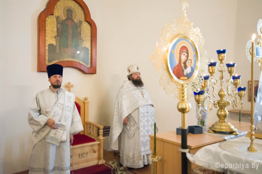 Высокопреосвященнейшему сослужили: секретарь Гомельской епархии протоиерей Георгий Алампиев и духовенство епархии.