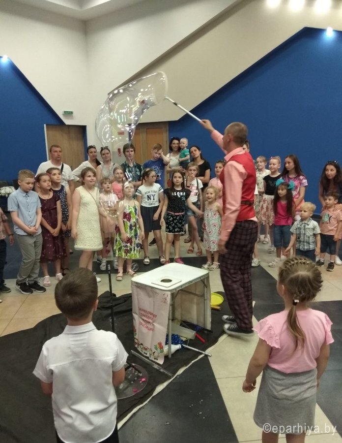 1 июня, в первый день лета, во многих странах отмечается Международный день защиты детей. Даже природа, своим солнечным теплым днем, привнесла яркие краски летнего настроения. Радостный детский смех раздавался во многих уголках нашего города на протяжении всего дня.По благословению Высокопреосвященнейшего Стефана в этот день, для детей воскресной школы Свято-Петро-Павловского собора, в ГЦК прошло шоу Мыльных пузырей с участием аниматоров. Организаторами мероприятия выступили Собор Петра и Павла и отдел по работе с молодежью Гомельской епархии.
