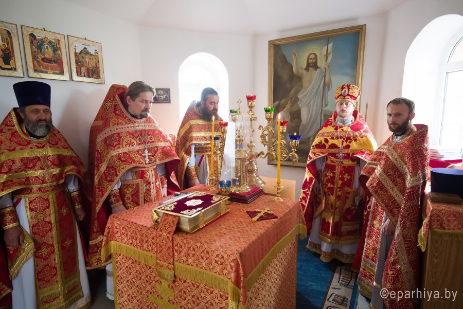 Владыке сослужили: благочинный монастырей Гомельской епархии архимандрит Амвросий (Шевцов), секретарь Гомельской епархии протоиерей Георгий Алампиев, благочинный Гомельского городского округа протоиерей Игорь Ольшанов и духовенство епархии.