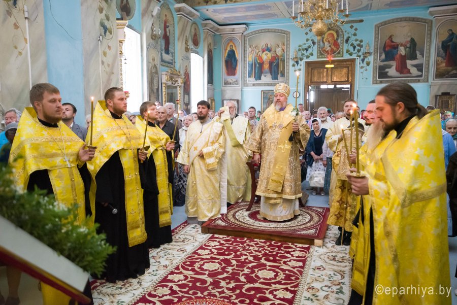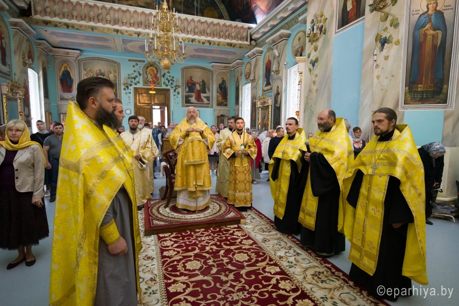 Высокопреосвященнейшему сослужили: секретарь Гомельской епархии протоиерей Георгий Алампиев и духовенство собора.