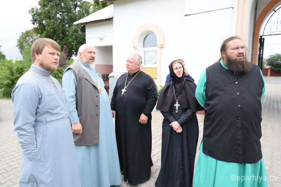 Высокопреосвященному сослужили: секретарь Гомельской епархии протоиерей Георгий Алампиев, благочинный монастырей Гомельской епархии архимандрит Амвросий (Шевцов), благочинный Жлобинского округа протоиерей Василий Пилипенко, настоятель прихода протоиерей Леонид Михайловский и духовенство округа.