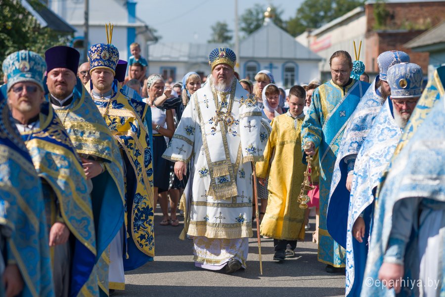 По окончании богослужения Владыка, по сложившейся многолетней традиции, совместно с духовенством и многочисленными верующими совершил крестный ход от храма Покрова Пресвятой Богородицы до храма Успения Пресвятой Богородицы, в сопровождении передвижной звонницы Гомельской епархии.