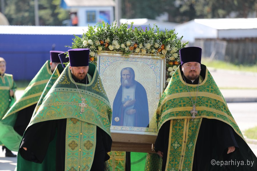По благословению Высокопреосвященного Стефана, архиепископа Гомельского и Жлобинского 18 августа 2019 г. в г. Светлогорск прибыла великая святыня: икона с частицей мощей преподобного Серафима Саровского. Около 300 жителей города встретили святыню у торгового центра «Березки», откуда крестным ходом, в сопровождении передвижной звонницы храма Преображения Господня в г. Гомеле, доставили в храм Преображения Господня в г. Светлогорске, где и будет находиться святыня до 27 августа.Верующие смогут помолиться у иконы святого, который своим уникальным примером явил чудеса веры и при жизни согревал любовью всякого приходящего к нему.