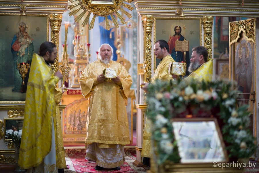 Божественную литургию в Петро-Павловском кафедральном соборе г.Гомеля 7 августа 2019г. в среду 8-й седмицы по Пятидесятнице совершил Высокопреосвященнейший Стефан архиепископ Гомельский и Жлобинский в сослужении духовенства собора.По окончании Литургии Владыка Стефан поздравил причастников с принятием Святых Христовых Таин и обратился к молящимся со словами Архипастырского назидания.