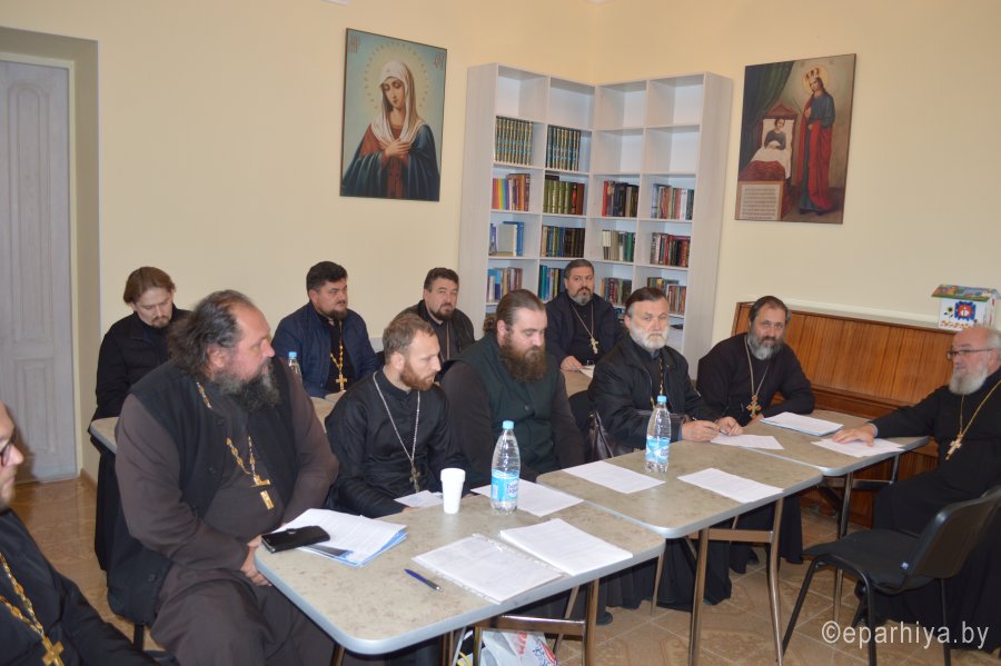 В четверг 24 октября 2019г. состоялось общее собрание священнослужителей Речицкого благочинного округа, которое возглавил настоятель Свято-Успенского собора в г. Речице, благочинный Речицкого округа, протоиерей Алексей Пешко.На собрании были рассмотрены вопросы подготовки районного этапа V областных Покровских образовательных чтений, активизации взаимодействия приходов с учреждениями образования района, участия духовенства в работе передвижной церковно-экологической выставки «Человек и творение», которая будет представлена в ГУК "Речицкий эколого-культурный центр" с 18 ноября по 6 декабря этого года, а также текущие вопросы приходской жизни.