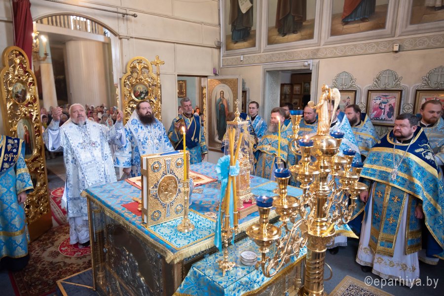 Божественную литургию в Казанском пределе Петро-Павловского кафедрального собора г.Гомеля 24 октября 2019г. в четверг 19-й седмицы по Пятидесятнице совершил Высокопреосвященнейший Стефан архиепископ Гомельский и Жлобинский в сослужении духовенства собора.По окончании Литургии Владыка Стефан поздравил причастников с принятием Святых Христовых Таин и обратился к молящимся со словами Архипастырского назидания.