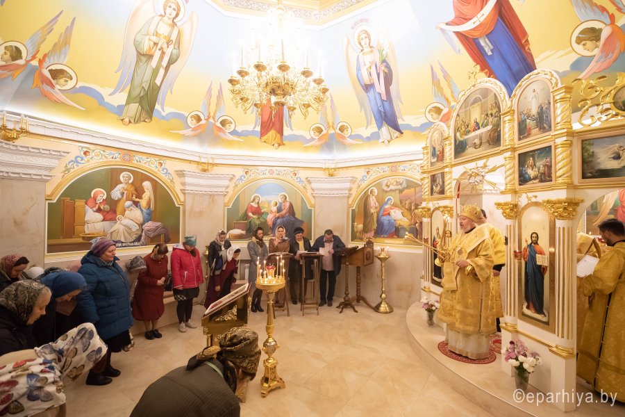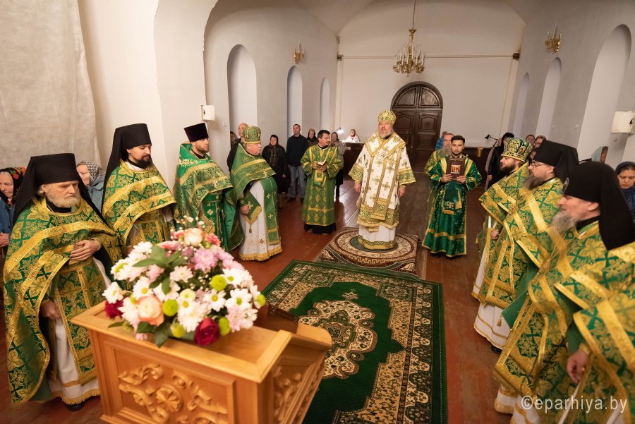 За сугубой ектинией были вознесены молитвы о здравии тезоименитого епископа Светлогорского Амвросия, викария Гомельской епархии, наместника Никольского мужского монастыря.