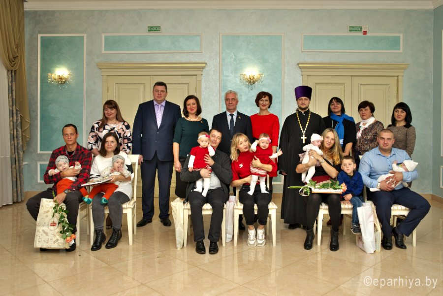 Новорожденных поздравили клирик прихода храма св. блгв. кн. Александра Невского в г. Гомеле иерей Виталий Партий, депутаты Гомельского городского Совета депутатов, Новобелицкая общественная организация «Белорусский союз женщин», «БРСМ» и «Белая Русь».