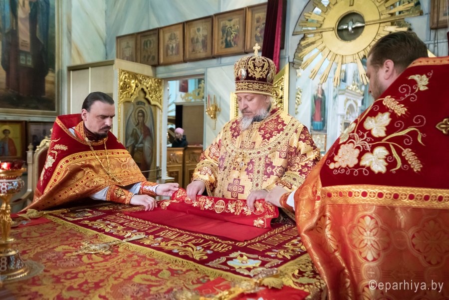 Божественную литургию в отдание праздника Преполовения Пятидесятницы и празднования обретения Жировичской иконы Божией Матери 20 мая 2020г. Высокопреосвященнейший Стефан, архиепископ Гомельский и Жлобинский совершил в Петро-Павловском кафедральном соборе г.Гомеля в сослужении духовенства собора.После сугубой ектении владыка Стефан вознес молитву против зловредного поветрия.