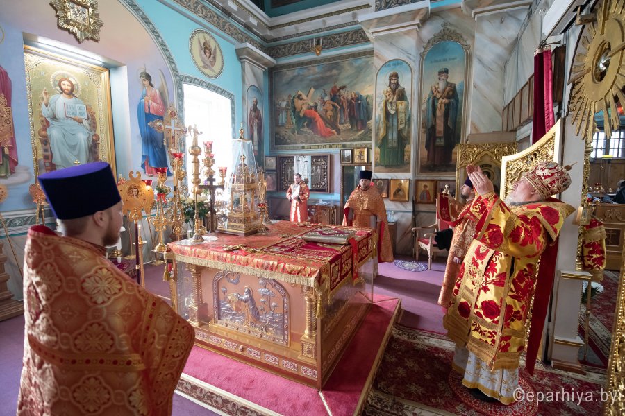 Божественную литургию в день памяти блгв. князей Российских Бориса и Глеба 15 мая 2020г. Высокопреосвященнейший Стефан, архиепископ Гомельский и Жлобинский, совершил в Петро-Павловском кафедральном соборе г.Гомеля в сослужении духовенства собора.После сугубой ектении владыка Стефан вознес молитву против зловредного поветрия.