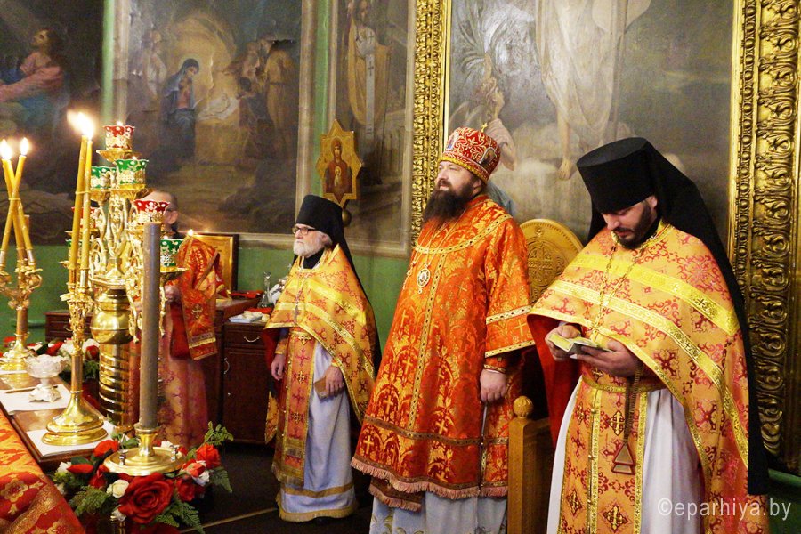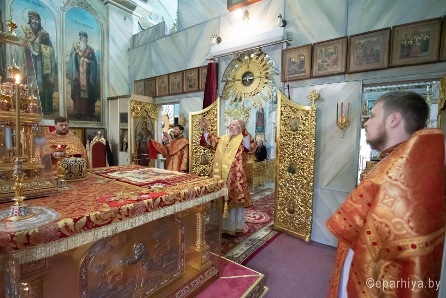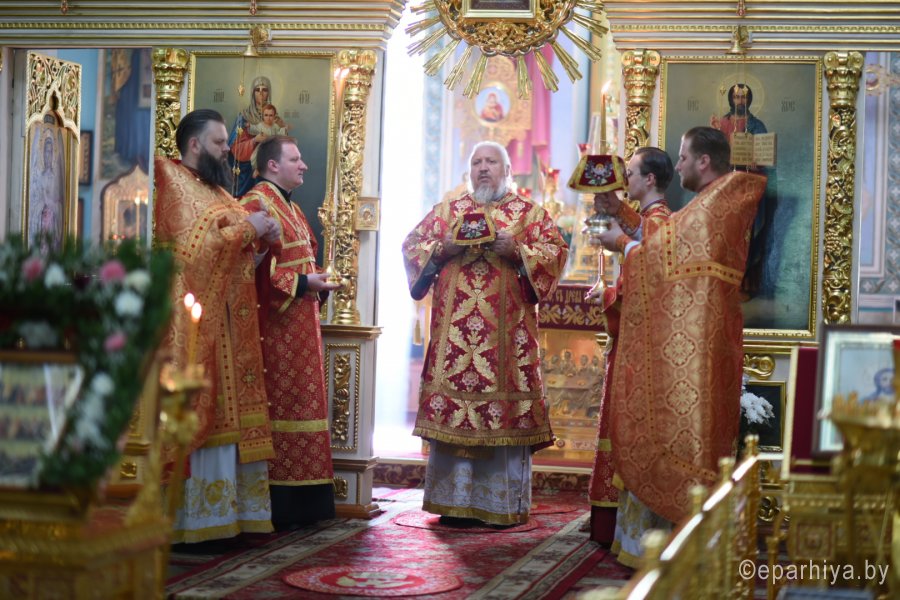 Божественную литургию в Преполовение Пятидесятницы 13 мая 2020г. Высокопреосвященнейший Стефан, архиепископ Гомельский и Жлобинский, совершил в Петро-Павловском кафедральном соборе г.Гомеля в сослужении духовенства собора.После сугубой ектении владыка Стефан вознес молитву против зловредного поветрия.