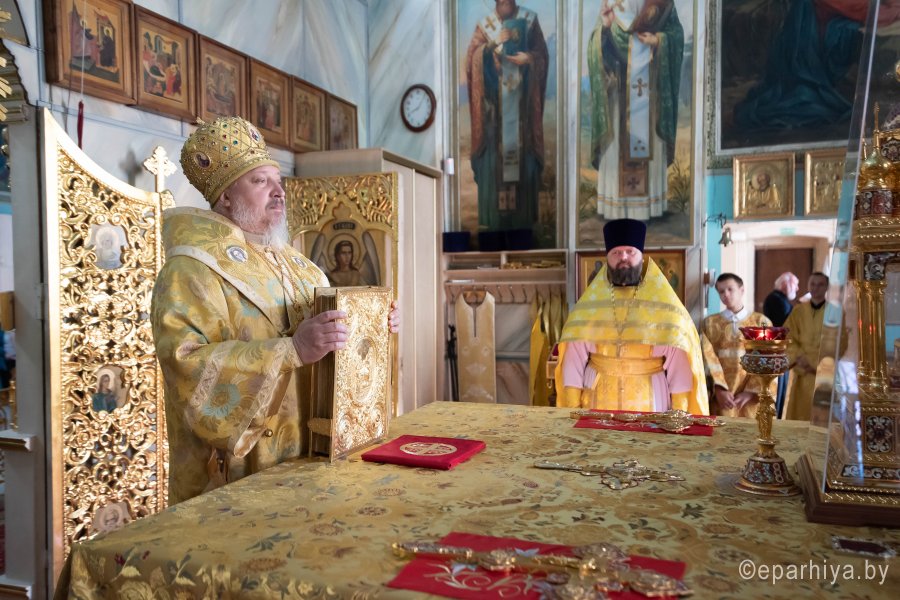 Преосвященнейшему сослужили: благочинный Светлогорского округа протоиерей Александр Кисель, настоятель храма протоиерей Владимир Семенов и духовенство благочиния.
