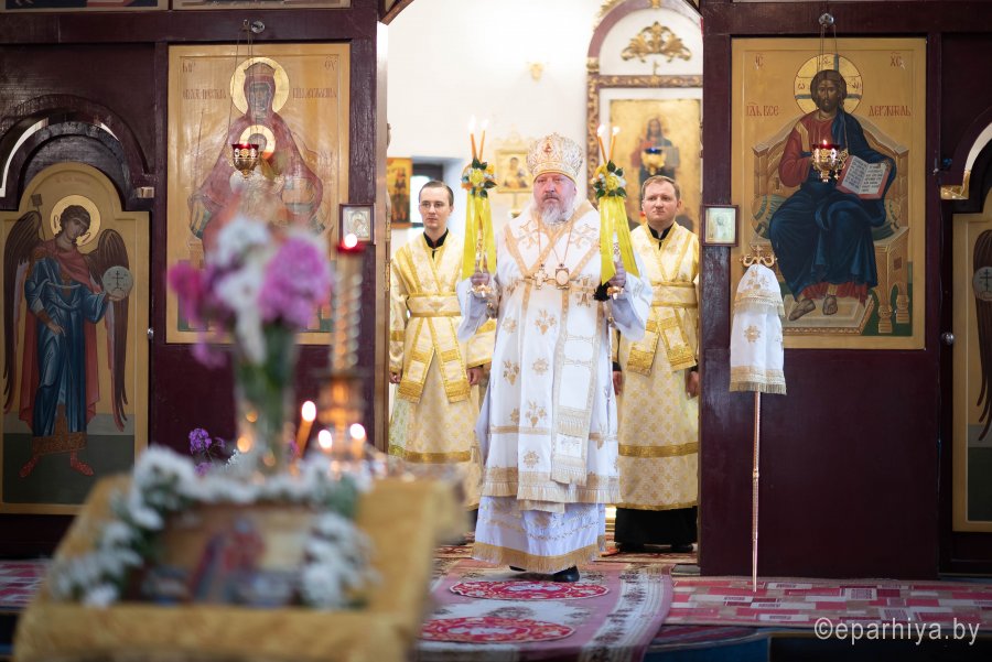 По окончании богослужения Владыка совершил славление празднику, поздравил настоятеля храма протоиерея Владимира Масалитина с Днем Ангела, а причастников с принятием Святых Христовых Таин и обратился к молящимся со словами Архипастырского назидания.