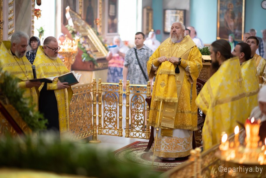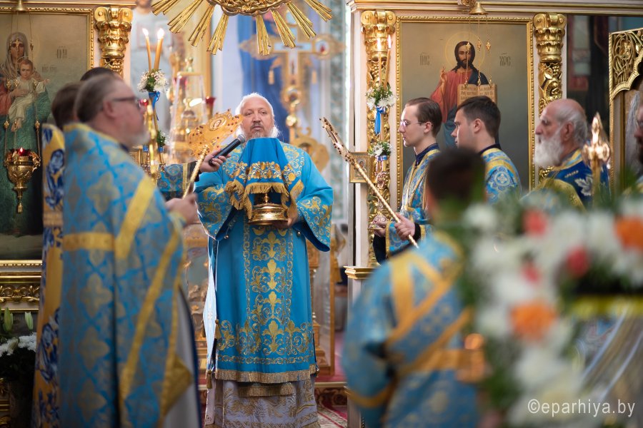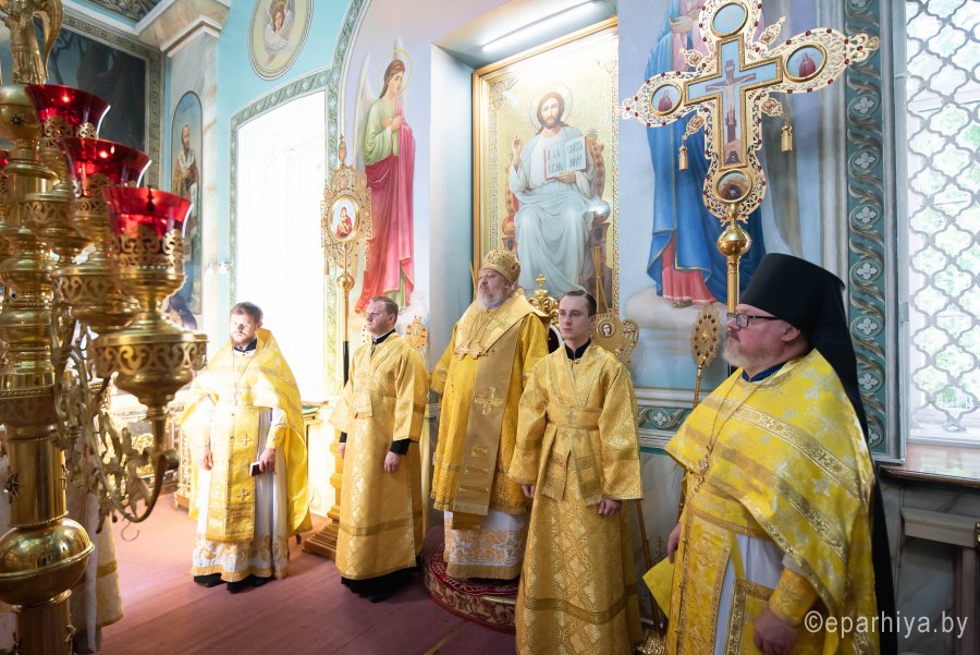 Владыке сослужили: духовник Гомельской епархии протоиерей Стефан Гладыщук, секретарь Гомельской епархии протоиерей Георгий Алампиев, благочинный Гомельского городского округа протоиерей Игорь Ольшанов и духовенство епархии.