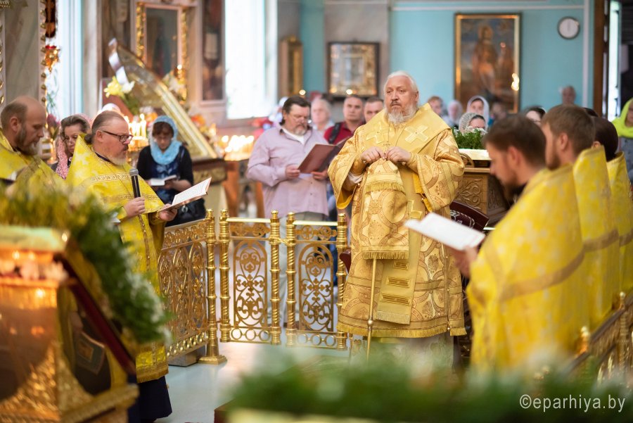 Всенощное бдение в главном храме епархии в канун дня памяти славных и всехвальных первоверховных апостолов Петра и Павла 11 июля 2020г. возглавил Высокопреосвященнейший Стефан, архиепископ Гомельский и Жлобинский в сослужении епископа Амвросия, викария Гомельской епархии.Архипастырям сослужили: секретарь Гомельской епархии протоиерей Георгий Алампиев и духовенство собора.