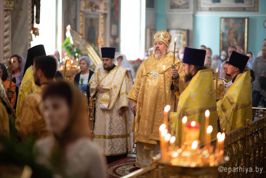Высокопреосвященнейшему сослужили: секретарь Гомельской епархии протоиерей Георгий Алампиев, благочинный Гомельского городского округа протоиерей Игорь Ольшанов, настоятель прихода протоиерей Александр Ковалев и духовенство епархии.