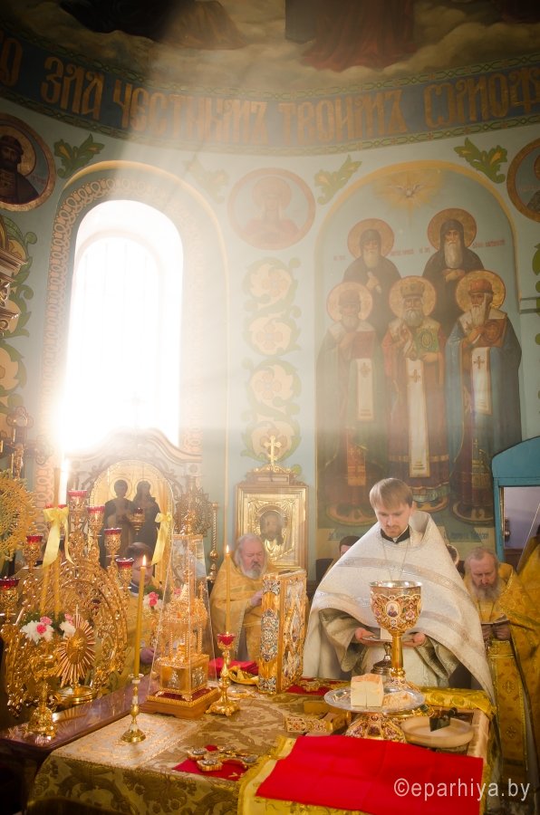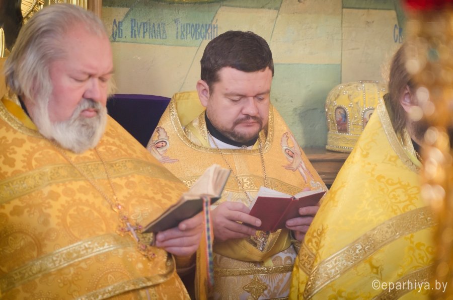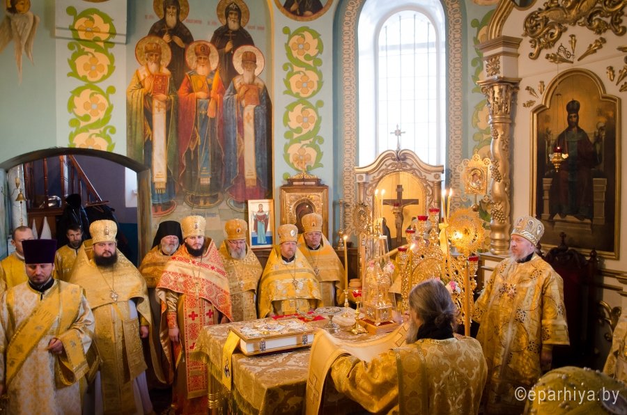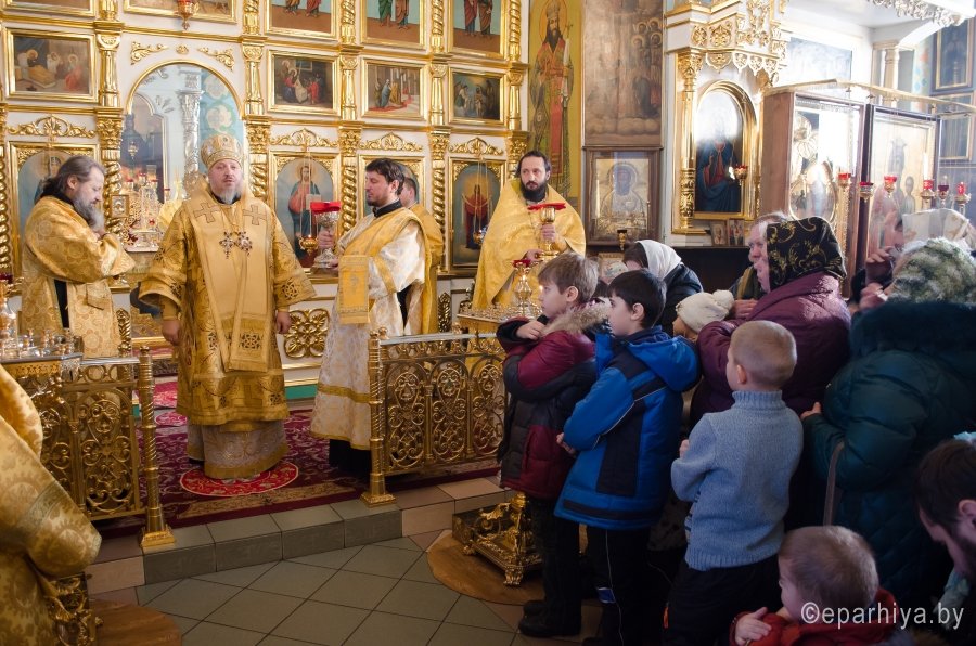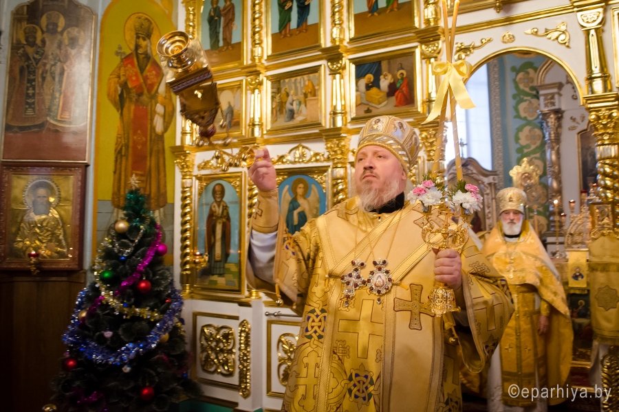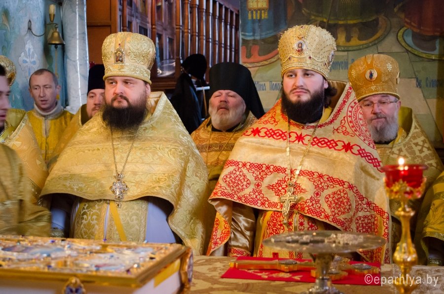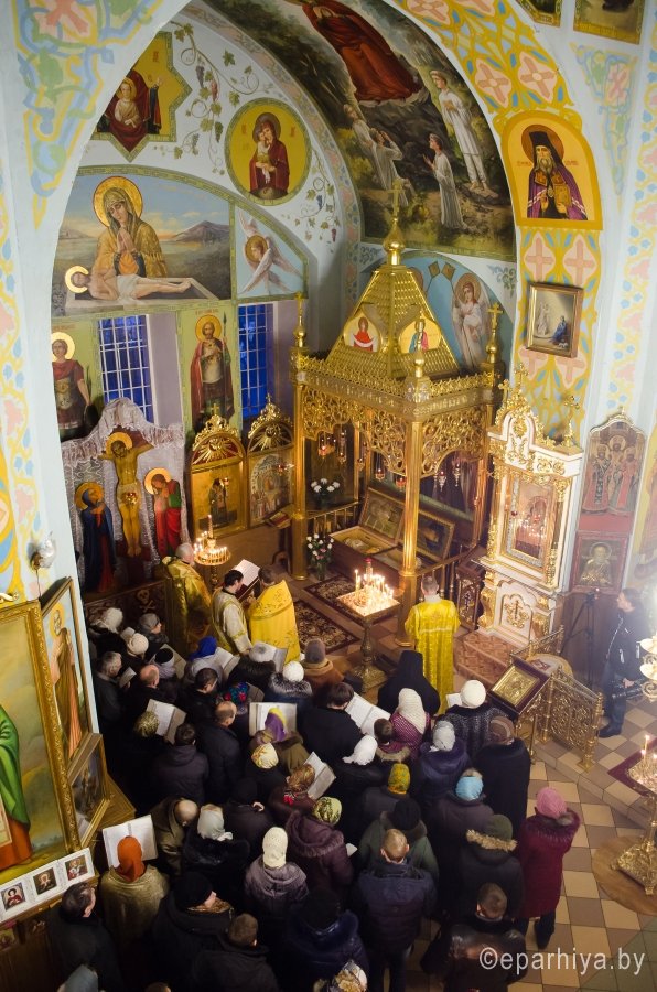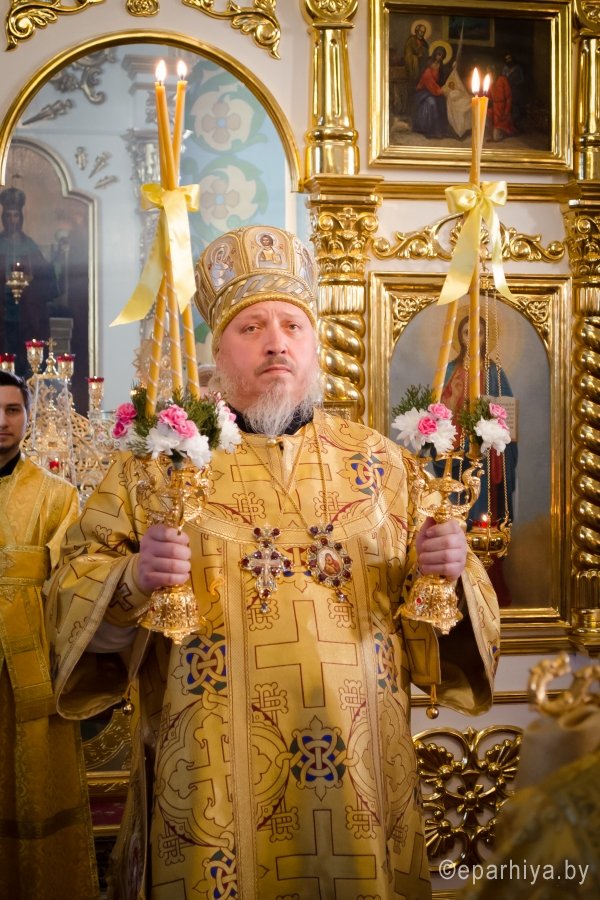 3 января 2016г., в день своего 50-летнего юбилея, Преосвященнейший Стефан возглавил Божественную литургию в Свято-Покровском храме Свято-Иоанно-Кормянского женского монастыря д.Корма Добрушского района. Преосвященному сослужили: секретарь Гомельской епархии протоиерей Георгий Алампиев, клирик Черниговской епархии архимандрит Роман (Расюк), благочинный монастырей Гомельской епархии архимандрит Амвросий (Шевцов), клирик Нежинской епархии архимандрит Афанасий (Дьяков), клирик Киевской епархии архимандрит Александр (Пелых), благочинные округов, руководители епархиальных отделов и духовенство епархии. Также на богослужении молились настоятельница Свято-Иоанно-Кормянского женского монастыря игуменья Платонида (Гордиченко), настоятельница Свято-Успенского женского монастыря игуменья Иоанна (Ярец) с сестрами, сестры Свято-Тихвинской обители, председатель Добрушского районного исполнительного комитета Ольга Федоровна Мохарева и представители светских властей района. За богослужением Владыка совершил хиротонию клирика Свято-петро-Павловского кафедрального собора г.Гомеля диакона Димитрия Жданова во иерея. Проповедь по запричастном стихе произнес насельник Свято-Никольского мужского монастыря архимандрит Савва (Мажуко). В завершении Литургии Владыка возглавил молебен святителю Петру, митрополиту Московскому и всея Руси чудотворцу, день памяти которого почитается Православной Церковью 3 января. Богослужебные песнопения исполнил народный молодёжный камерный хор «Возрождение» под управлением Галины Еременко. По окончании богослужения Владыка в своем пастырском слове рассказал о своем детстве, о своем пути к служению Матери Церкви, о том, какое значение несет в его жизни Свято-Иоанно-Кормянская обитель - неспроста литургию в день своего 50-летия Владыка совершил в Свято-Покровском храме женского монастыря. Здесь он был настоятелем храма, а позднее архимандритом. Именно благодаря его стараниям в 1991 году были обретены мощи святого праведного Иоанна Кормянского, который 30 апреля 1998 года был причислен к лику местночтимых святых. Секретарь Гомельской епархии протоиерей Георгий Алампиев зачитал поздравление Святейшего Патриарха Московского и всея Руси Кирилла Преосвященнейшему Стефану с 50-летием со дня рождения. От лица духовенства со словами поздравления к Владыке обратились благочинный Гомельской епархии протоиерей Стефан Гладыщук преподнеся просфору и благочинный монастырей Гомельской епархии архимандрит Амвросий (Шевцов) и преподнес в дар букет цветов. Затем Владыка принял поздравления от всех присутствующих. |