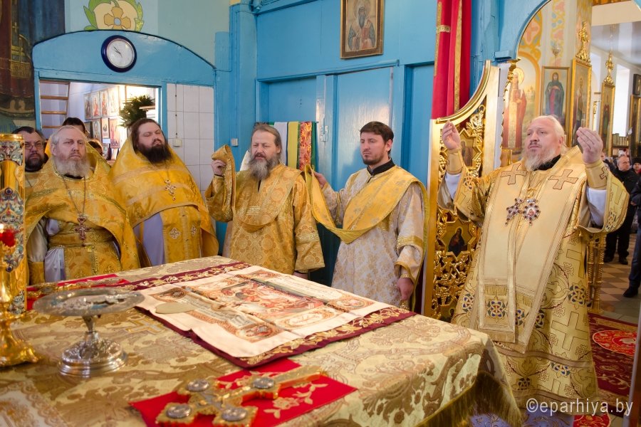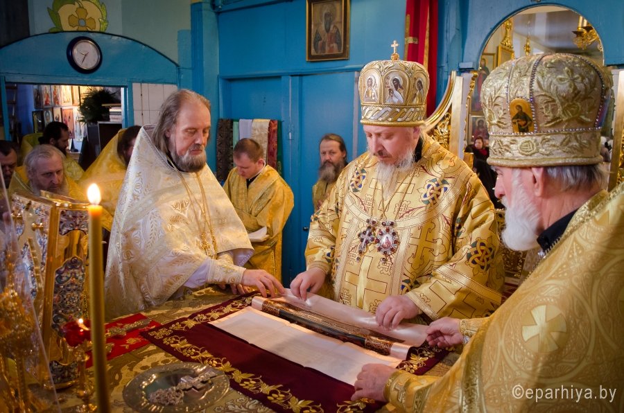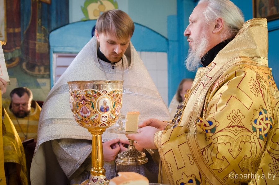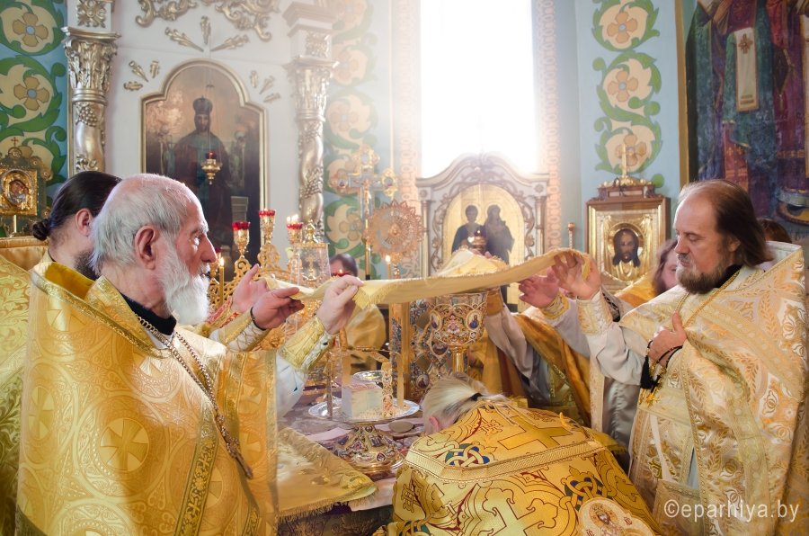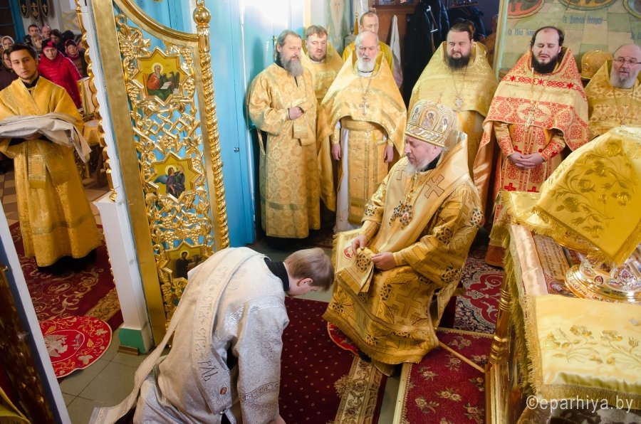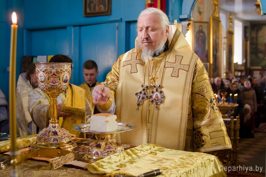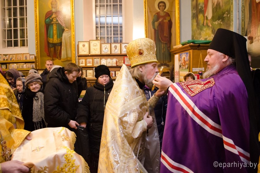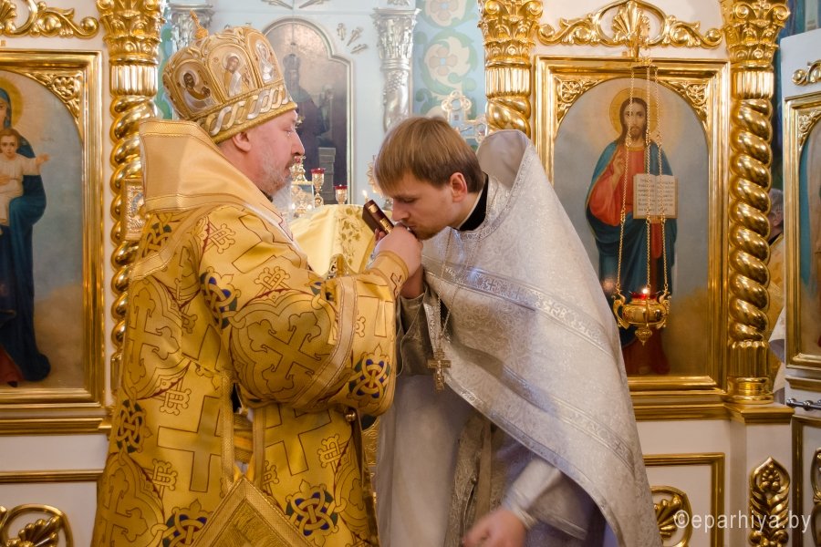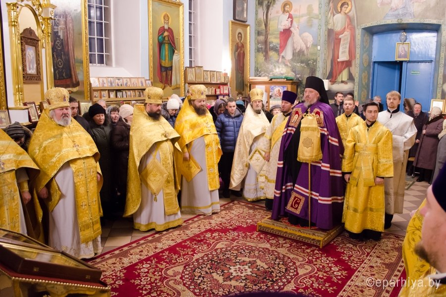 3 января 2016г., в день своего 50-летнего юбилея, Преосвященнейший Стефан возглавил Божественную литургию в Свято-Покровском храме Свято-Иоанно-Кормянского женского монастыря д.Корма Добрушского района. Преосвященному сослужили: секретарь Гомельской епархии протоиерей Георгий Алампиев, клирик Черниговской епархии архимандрит Роман (Расюк), благочинный монастырей Гомельской епархии архимандрит Амвросий (Шевцов), клирик Нежинской епархии архимандрит Афанасий (Дьяков), клирик Киевской епархии архимандрит Александр (Пелых), благочинные округов, руководители епархиальных отделов и духовенство епархии. Также на богослужении молились настоятельница Свято-Иоанно-Кормянского женского монастыря игуменья Платонида (Гордиченко), настоятельница Свято-Успенского женского монастыря игуменья Иоанна (Ярец) с сестрами, сестры Свято-Тихвинской обители, председатель Добрушского районного исполнительного комитета Ольга Федоровна Мохарева и представители светских властей района. За богослужением Владыка совершил хиротонию клирика Свято-петро-Павловского кафедрального собора г.Гомеля диакона Димитрия Жданова во иерея. Проповедь по запричастном стихе произнес насельник Свято-Никольского мужского монастыря архимандрит Савва (Мажуко). В завершении Литургии Владыка возглавил молебен святителю Петру, митрополиту Московскому и всея Руси чудотворцу, день памяти которого почитается Православной Церковью 3 января. Богослужебные песнопения исполнил народный молодёжный камерный хор «Возрождение» под управлением Галины Еременко. По окончании богослужения Владыка в своем пастырском слове рассказал о своем детстве, о своем пути к служению Матери Церкви, о том, какое значение несет в его жизни Свято-Иоанно-Кормянская обитель - неспроста литургию в день своего 50-летия Владыка совершил в Свято-Покровском храме женского монастыря. Здесь он был настоятелем храма, а позднее архимандритом. Именно благодаря его стараниям в 1991 году были обретены мощи святого праведного Иоанна Кормянского, который 30 апреля 1998 года был причислен к лику местночтимых святых. Секретарь Гомельской епархии протоиерей Георгий Алампиев зачитал поздравление Святейшего Патриарха Московского и всея Руси Кирилла Преосвященнейшему Стефану с 50-летием со дня рождения. От лица духовенства со словами поздравления к Владыке обратились благочинный Гомельской епархии протоиерей Стефан Гладыщук преподнеся просфору и благочинный монастырей Гомельской епархии архимандрит Амвросий (Шевцов) и преподнес в дар букет цветов. Затем Владыка принял поздравления от всех присутствующих. |