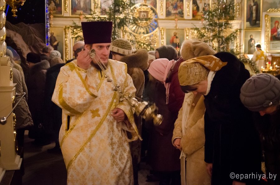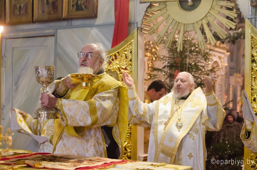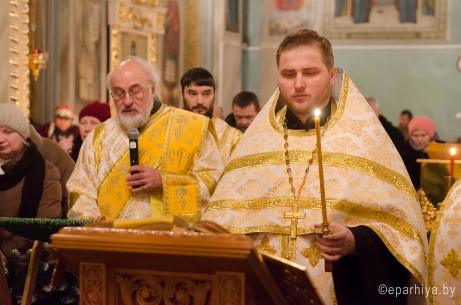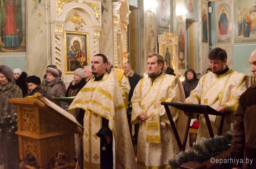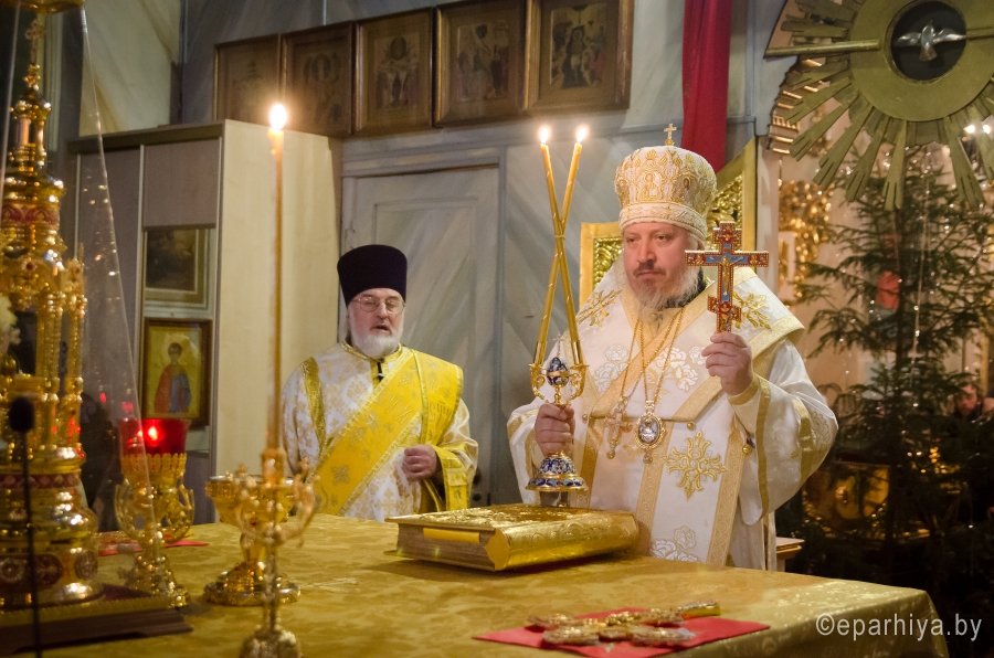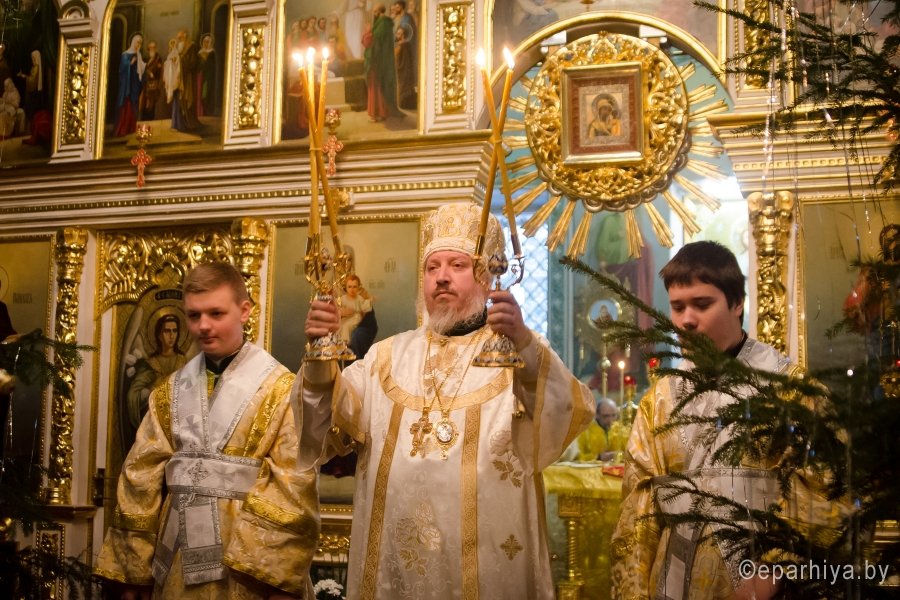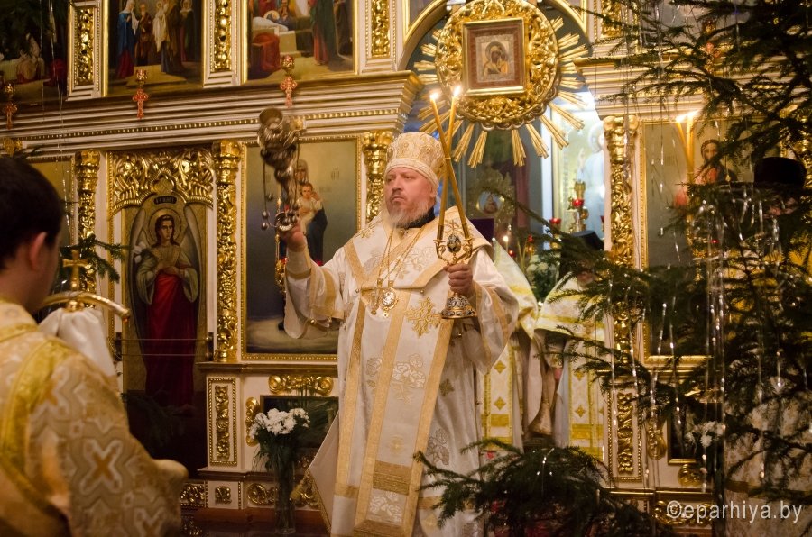 6 января 2016г., в навечерие Рождества Христова (Рождественский сочельник), Преосвященный Стефан в сослужении духовенства собора совершил великую вечерню и Божественную литургию святителя Василия Великого в Свято-Петро-Павловском кафедральном соборе г.Гомеля. В завершение Литургии перед рождественской свечой, знаменующей Вифлеемскую звезду, были пропеты тропарь и кондак праздника Рождества Христова. |