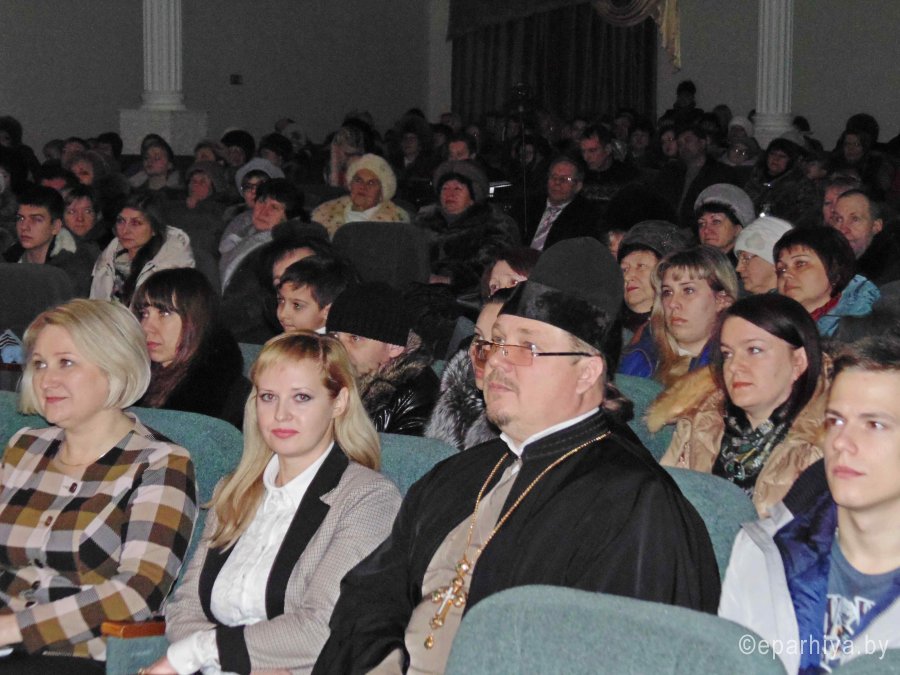 8 января 2016 года в районном Дворце культуры города Добруша состоялось праздничное мероприятие, посвященное Рождеству Христову. Со сцены Дворца в этот день выступили лучшие вокальные, инструментальные и хореографические коллективы города, песнопения праздника прозвучали в исполнении молодежного хора Свято-Николаевского храма, в фойе была организована выставка работ учащихся художественного отделения ГУО «Детская школа искусств г. Добруша». Теплые сердечные слова пастырского назидания произнес всем собравшимся благочинный Добрушского округа церквей, протоиерей Алексий Пилипенко. Он призвал всех к соединению со Христом: «Да потрудимся ради Него, да принесем Ему золото молитвы, благодать ладана, надежду смирны». Отец Алексей пожелал всем мира от Господа, здравия, долготерпения, благодати, радости, «так как только с Богом мы можем иметь истинную любовь, ту которую ищем порой всю жизнь, потому что ради этого стоит жить». Он с огромной благодарностью вручил икону и православную литературу директору ГУО «Детская школа искусств г. Добруша» Медведевой Р.А., понесшей благие труды по организации праздничного мероприятия. Концерт прошел на одном дыхании! И в завершении восхищенные зрители аплодировали стоя. Все участники получили сладкие подарки от руководства Добрушского райисполкома. Активисты от православной молодежи раздали гостям информационные буклеты, повествующие о светлом празднике Рождества. |